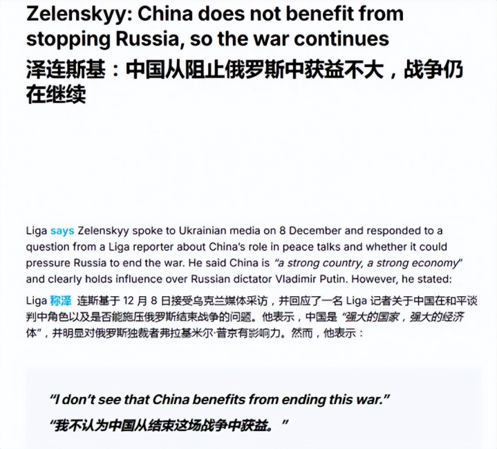 泽连斯基: 俄乌接着打中国才有利, 只要中国不想停, 这仗就停不了